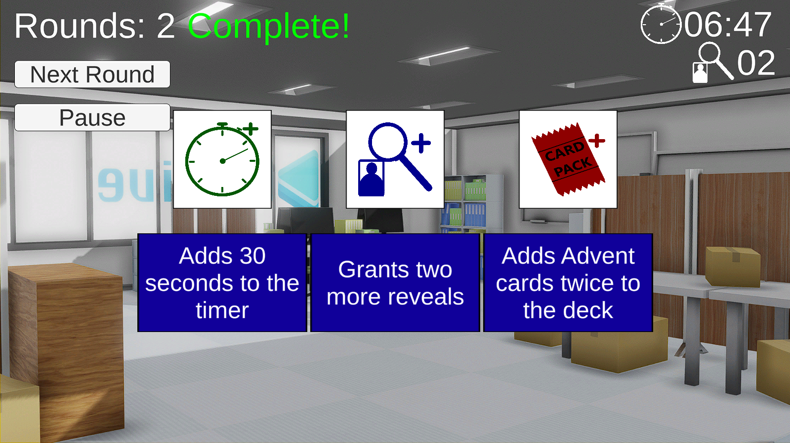 Between rounds you can choose a buff between adding more time, getting two more reveals, or adding additional cards to the deck of cards to be matched from the same group (this will allow the same meber to appear multiple times in a level)